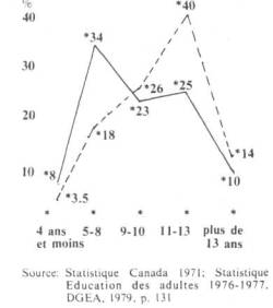Malheureusement, toutes ces interventions sont loin de servir de support à la promotion collective; la plupart sont encore conçues et réalisées dans une perspective de promotion et d'accessibilité individuelles: formation professionnelle, acquisition d'habilités manuelles (macramé, couture, mécanique auto)... On a constaté après quelques années que les adultes qui s'inscrivent notamment aux cours dit d'éducation populaire dans les Commissions scolaires viennent surtout de la classe moyenne et de milieux aisés, c'est ce que révèlent des statistiques récentes 1 de la DGEA.