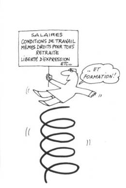 "Dans les syndicats ouvriers, des milliers de travailleurs se réunissent pour étudier les différents problèmes qui les concernent: accidents de travail, fonds de pension, démocratie syndicale, conditions de travail, etc.. Plus connaissants, ils peuvent mieux lutter pour améliorer leur sort collectif.