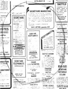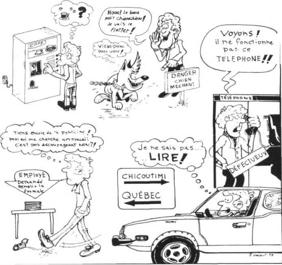 Illustrations: D. Faubert, in MEDIUM-MEDIA, ONF: p. 1; Cadier, in POURQUOI?, No. 117, sept. 1976: p. 2; No. 119, nov. 1976: p. 3; No. 134, avril 1978: p. 9; Claudius, in ATTENTION ECOLE , IDAC, Nos. 16-17: p. 4; ANTENNES, No. 5, 1977: p. 6; Girerd, in ANTENNES, Nos. 13-14, 1979: p. 7; Radio-Canada, in IN SEARCH/ENQUÈTE, été 1977: pp. 5, 8; Télé-Métropole in IN SEARCH/EN QUÊTE, été 1977: p. 12; D. Sylvestre, in IN SEARCH/ EN QUETE, été 1979: p. 11; L. Nantel: p. 13; Henz, in CFDT AUJOURD'HUI, No. 29, 1978: p. 9; Sadabel, in CFDT AUJOURD'HUI, No. 29, 1978: p. 12.