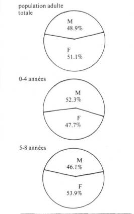 L'éducation des adultes se voulait à son tour un importantlevier de démocratisation de l'enseignement. Constat d'échec: les deux-tiers des fonds prévus à cette fin sont absorbés par les seules fonctions de perfectionnement et de recyclage. Là comme ailleurs, les contraintes économiques ont primé sur toutes autres considérations; à preuve, la formation professionnelle réservée aux travailleurs est étroitement reliée à la tâche et se retrouve de plus en plus en industrie; quant à celle dispensée à l'université, elle rejoint une clientèle déjà scolarisée.