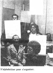 Les syndicats et les groupes populaires, dont l'éducation est fondamentalement reliée à l'action, font fies efforts pour dépasser l'activisme des campagnes ponctuelles et les insérer dans un processus d'éducation plus global. Les contacts qu'ils favorisent sont, autant que possible, axés sur la réalité commune des participants: échanges entre travailleurs et travailleuses d'un même secteur, entre groupes de femmes, entre groupes de paysans... Mais les moyens dont ils disposent sont plus que limités, et leur action à ce niveau s'en trouve sérieusement freinée.