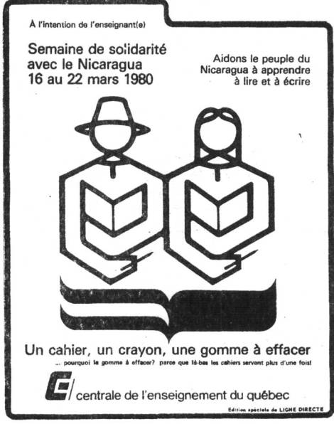 Les campagnes de sensibilisation ou les actions de solidarité internationale n'ont de sens que si elles sont un aboutissement du processus d'éducation, un temps fort qui fait mieux comprendre les enjeux. Elles doivent s'insérer dans un processus et être menées en lien avec un ensemble d'activités éducatives qui la fassent mieux comprendre. Le travail récent sur la campagne d'alphabétisation au Nicaragua est un exemple dans ce sens: il n'a pas été un simple événement mais a été préparé, expliqué, discuté avant d'aboutir au geste de solidarité même.
