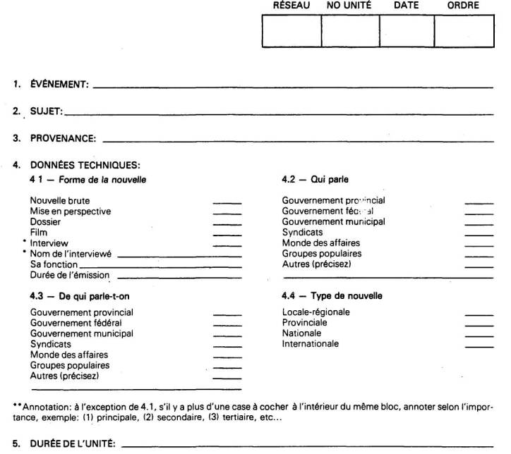 Le procédé pourra sembler un peu cruel mais nous croyons qu'il est possible de dégager assez clairement l'idéologie transmise par les mass-médias sur le travail des femmes, par exemple, en analysant à notre tour le document d'analyse produit en mars 77 par le Front commun sur les communications et intitulé Dossier noir sur la radio et la télévision commerciales.