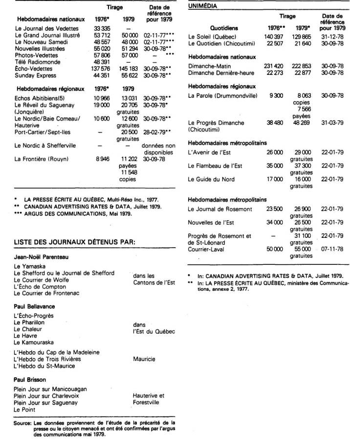 Dans cette perspective, l'ICEA, grâce à la collaboration de chercheurs et d'étudiants de l'UQAM, publiait en 1979, trois rapports de recherche sur les communications de masse1 . Le premier, Les actualités télévisées, le monde recréé au service du pouvoir apporte, par l'analyse des téléjournaux, des preuves irréfutables que l'information est trafiquée et qu'elle est entre les mains de la minorité dominante. La mécanique du pouvoir dans les entreprises de presse montre comment le contrôle de l'information passe par le contrôle des journalistes dans 9 entreprises de presse au Québec et explique en quoi les informations que nous recevons sont loin d'être le reflet exact des événements et de la réalité. Portrait de la concentration dans la presse écrite au Canada démontre, chiffres à l'appui, que la concentration de la propriété des entreprises de communication s'accentue, évolue vers une situation de monopole et menace la liberté de presse et le droit de la population à une information diversifiée.